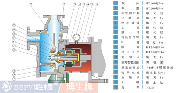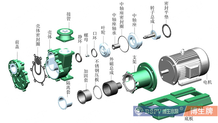 ZMD氟塑料自吸式磁力泵為公司推出新一代耐腐蝕自吸磁力泵,它不但集氟塑料磁力泵的優(yōu)點于一身,而且大的功能是可以自吸、無泄漏,這是以往的所有氟塑料磁力泵不能達(dá)到的。該系列泵可廣泛適用于化工、有色金屬冶煉、農(nóng)藥、制酸制堿、造紙、酸洗工藝、稀土分離、電鍍、電子、化成箔、卸酸堿等行業(yè)或工作流程,是目前磁力泵品種中結(jié)構(gòu)新穎的產(chǎn)品之一,且高效節(jié)能、**實用。 該泵的適用溫度:-20°C-100°C。ZMD氟塑料磁力泵采用電機(jī)直聯(lián)式結(jié)構(gòu),由中間支架支撐,結(jié)構(gòu)緊湊,拆卸維護(hù)方便,采用高性能磁性材料“釹鐵硼”制造內(nèi)外磁體,隔離套采用進(jìn)口非金屬材料, 徹底消除了一般磁力泵具有的磁渦流損耗,可輸送高濃度,密度大于1.84t/m3的強(qiáng)腐蝕介質(zhì);主要部件采用鋼襯F46,泵體強(qiáng)度高,能耐所有強(qiáng)酸,強(qiáng)堿的腐蝕; 產(chǎn)品充分結(jié)合了磁力泵與自吸泵的優(yōu)點,是在IMD磁力泵的基礎(chǔ)上延伸開發(fā)出來的產(chǎn)品,突出的特點是既具有自吸泵的自吸功能又有磁力泵的無泄漏、運轉(zhuǎn)寧靜的優(yōu)點,是液下泵好的替代產(chǎn)品。特別適合于輸送易燃、易爆、有毒、有揮發(fā)性及貴重介質(zhì)。現(xiàn)已批量投放市場,在很多項目上替代了進(jìn)口磁力泵。ZMD氟塑料磁力泵廣泛適用于石油化工、有色金屬冶煉農(nóng)藥、制酸制堿、造紙、酸洗工藝、稀土分離、電鍍、電子,化成箔等行業(yè)吸取輸送低于泵安裝位置以下的腐蝕性液體。