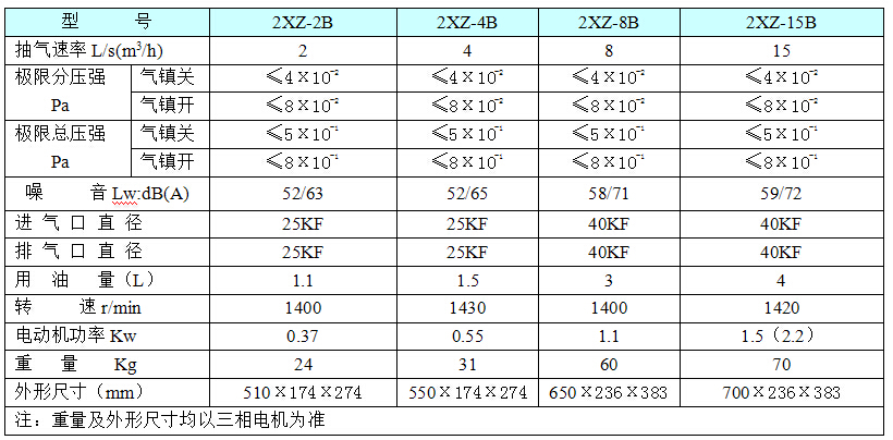 2XZ-B型雙級旋片式真空泵性能范圍: