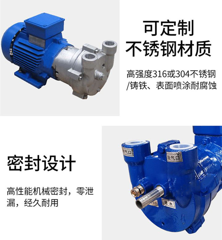 結(jié)構(gòu)簡單,制造精度要求不高,容易加工。結(jié)構(gòu)緊湊,泵的轉(zhuǎn)數(shù)較高,一般可與電動機(jī)直聯(lián),無須減速裝置。故用小的結(jié)構(gòu)尺寸,可以獲得大的排氣量,占地面積也小。壓縮氣體基本上是等溫的,即壓縮氣體過程溫度變化很小。由于泵腔內(nèi)沒有金屬磨擦表面,無須對泵內(nèi)進(jìn)行潤滑,而且磨損很小。轉(zhuǎn)動件和固定件之間的密封可直接由水封來完成。吸氣均勻,工作平穩(wěn)可靠,操作簡單,維修方便