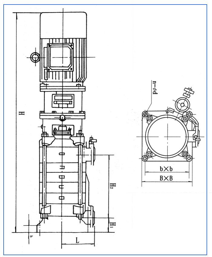 DL系列立式多級離心泵軸封采用軟填料或機械密封。產(chǎn)品執(zhí)行JB/T2727-93《立式多級離心泵型式與基本參數(shù)》標準,主要供吸送稀釋的、清潔的、不腐蝕的、不爆炸的清水及物理化學性質(zhì)類似水的不含固體顆?;蚶w維的液體。